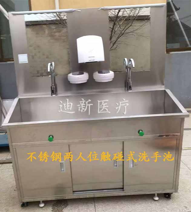 迪新醫(yī)療的不銹鋼洗手池按照出水方式可分為三種:感應(yīng)式、膝碰式和腳踏式。不銹鋼洗手池主要采用304雙層不銹鋼制作,經(jīng)久耐用;一體化池體,無(wú)焊縫,槽體設(shè)計(jì)主要依據(jù)人體工程學(xué)原理;紅外感應(yīng)出水系統(tǒng)配有醫(yī)學(xué)龍頭,不浪費(fèi)水源;自動(dòng)給皂器,使用方便衛(wèi)生;可根據(jù)客戶要求配置熱水器和烘手器。